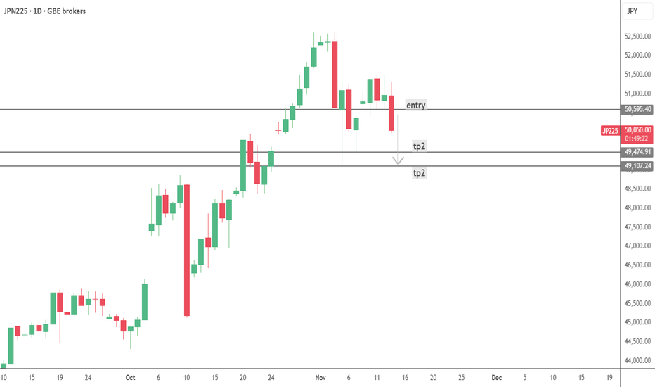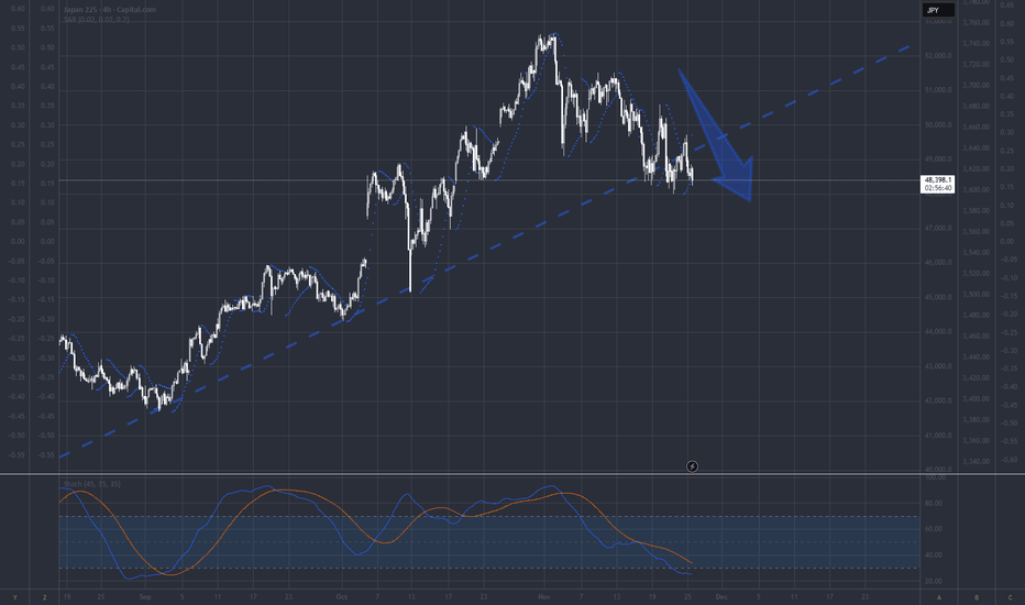J225 very bearishjapanese stocks just failed resuming into trend , price broke down, retested trend and horizontal resistance, and is coming back down again. Sell here. Stocks are now super bearish, nikkei and bitcoin leading bear market right now...
