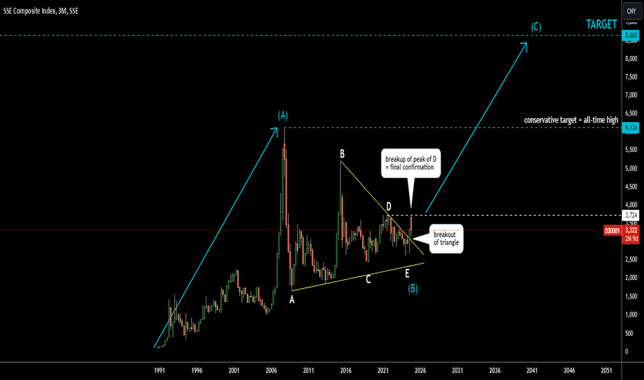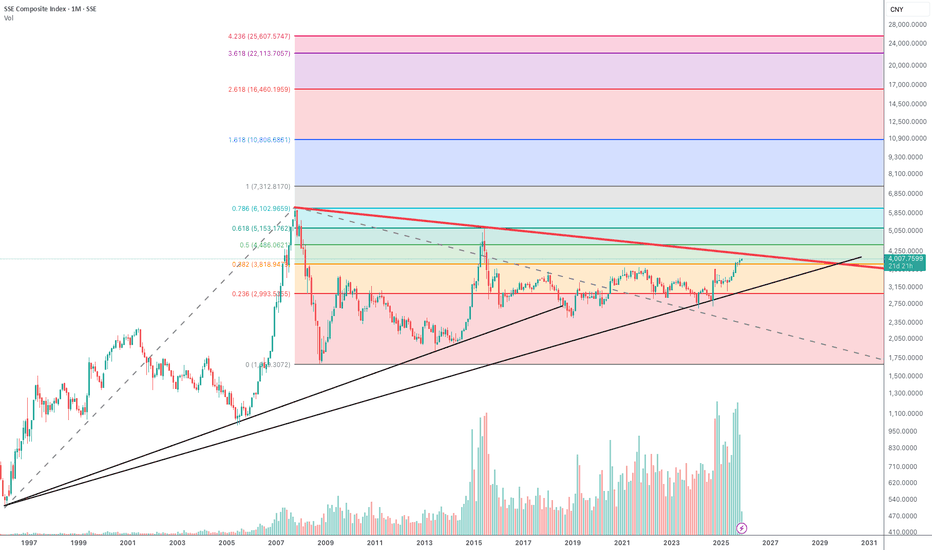 Shanghai Composite Index (SSE) To Hit 6,124 First, Then 8,660SSE had a rally from 2005 to 2007 establishing the all-time high of CNY 6,124.