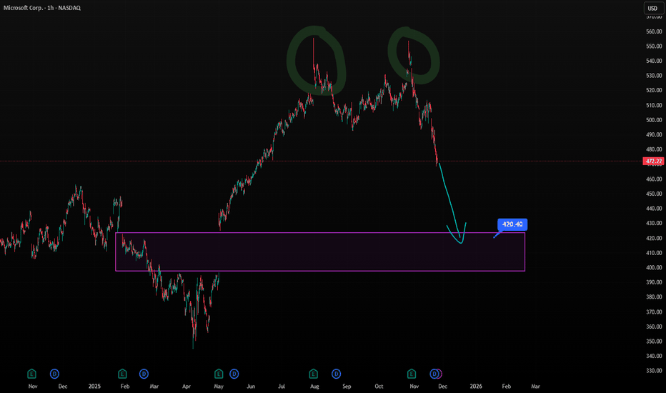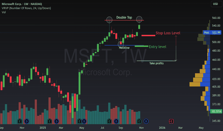 A Double Top in MSFT has just appeared.The weekly chart of Microsoft (MSFT) is showing a potential Double Top formation, a classic sign that bullish momentum might be losing strength .