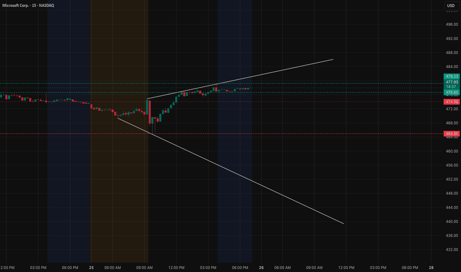 MSFT spent most of the session stuck inside that tight 475–478 pocket. It never really committed in either direction, and when a stock trades like this, it usually means bigger players are positioning quietly ahead of the next move. The recovery off the morning shakeout was solid, but every attempt