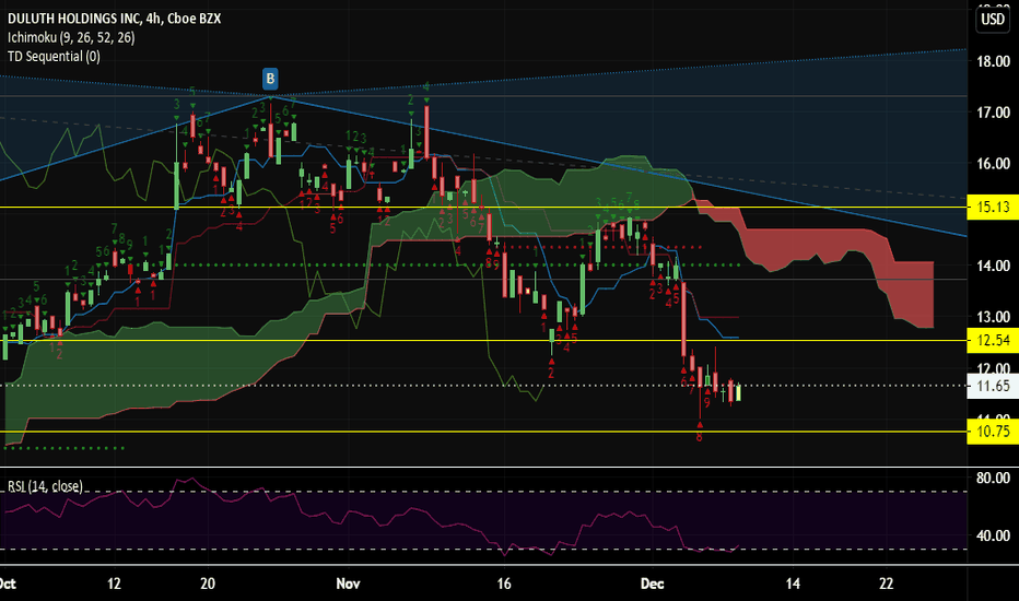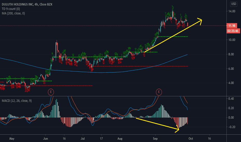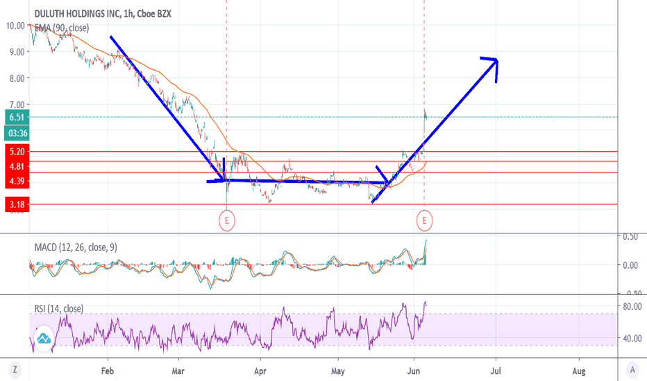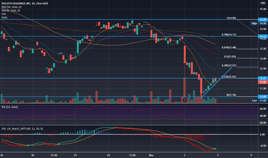 BUY to DULUTH HOLDINGSHello people, DULUTH HOLDINGS is in a bullish configuration with a hammer buying candle and a large volume of buying in the session. It is located on strong trend support that it wants to leave, we notice on the TIMEFRAME 5 1 MINUTE a bullish continuation. Great possibility of breaking out the conso