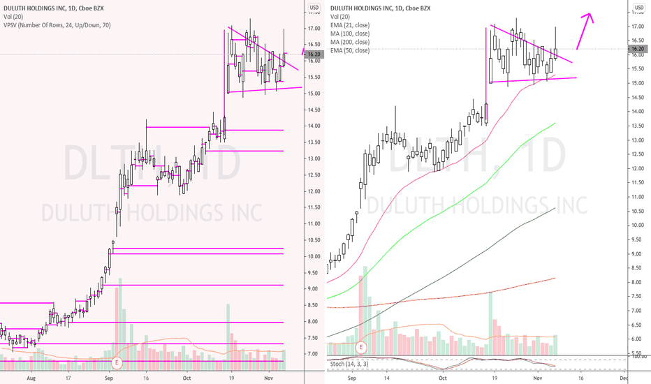 Like other stocks, DLTH shares are traded on stock exchanges, e.g. Nasdaq, Nyse, Euronext, and the easiest way to buy them is through an online stock broker. To do this, you need to open an account and follow a broker's procedures, then start trading. You can trade Duluth Holdings Inc. stock right from TradingView charts — choose your broker and connect to your account.