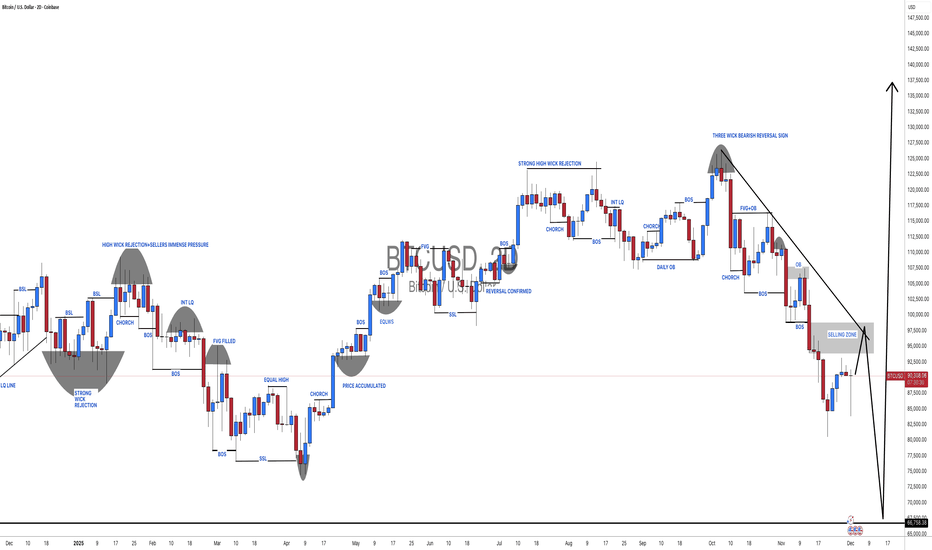 The price created a huge FVG, and this gap is very unfilled. Pretty much it looks like a huge manipulation from big players (they sent the price down significantly to liquidate high-leverage traders on futures). You know that the Bitcoin market is completely manipulated by the Fed, banks, and huge institutions. They even have a roadmap, and they know what the price of Bitcoin will be in 2030 and 2040. I know everyone hates the Fed and banks, but this is how it is. We trade it, so you have to be able to predict their movements and trade with their plan.