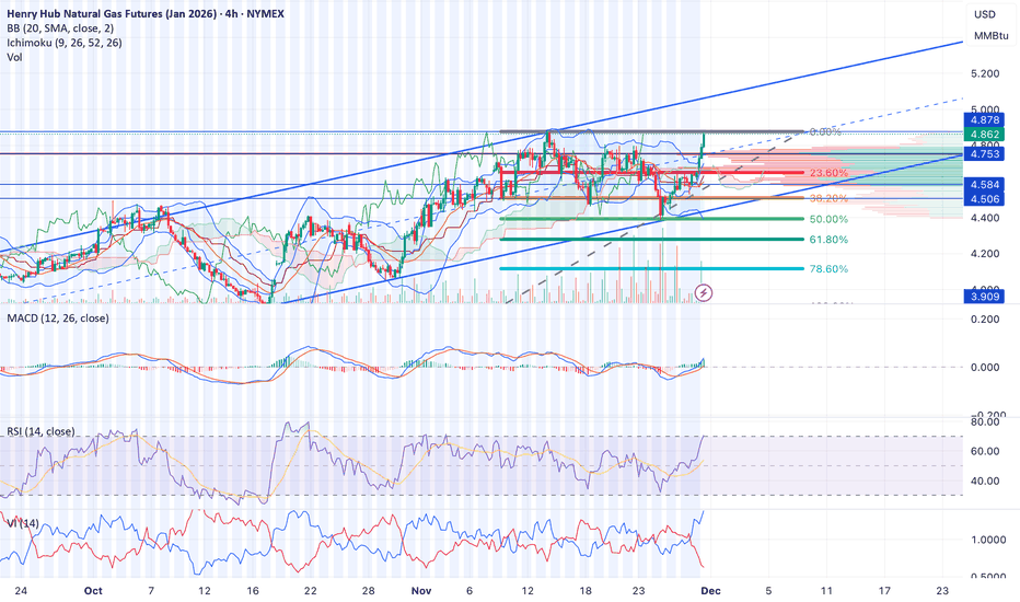 Back with a vengeance We are still in an upward channel even after all of this. Also bouncing off of 50% retracement. If we get momentum off of here this may be the swing that pushes us to almost $5 and may be the final extension of the season. This is gas tho so I wouldn’t rule out us hitting $5.50 before winter is over