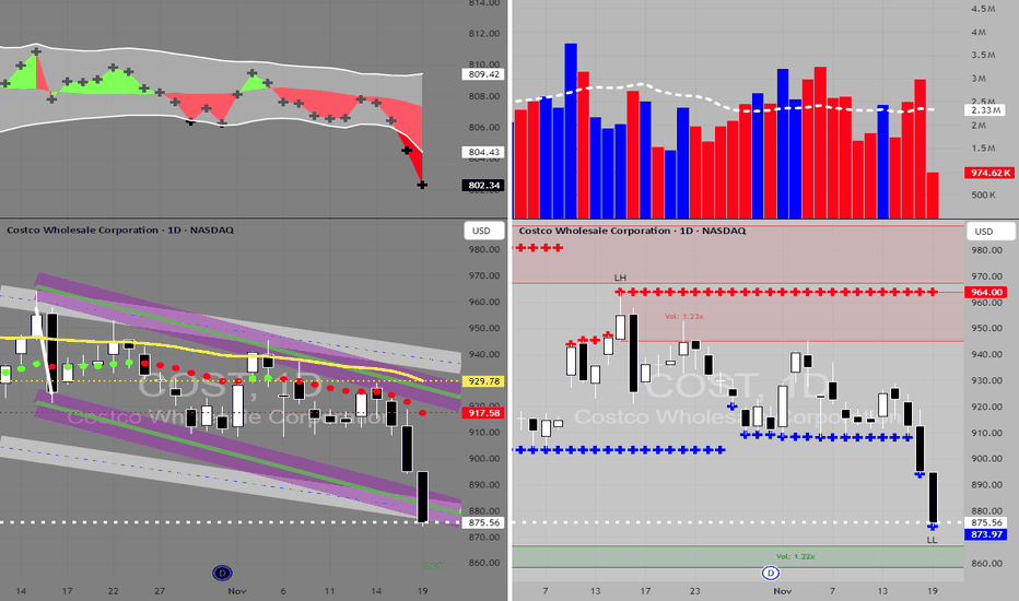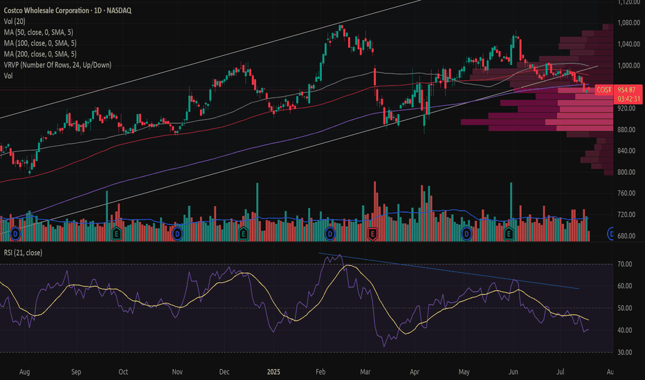 Costco has broken down from a rising trend Costco has broken down from a rising trend with increased volume and a significant price drop exceeding 3%.
