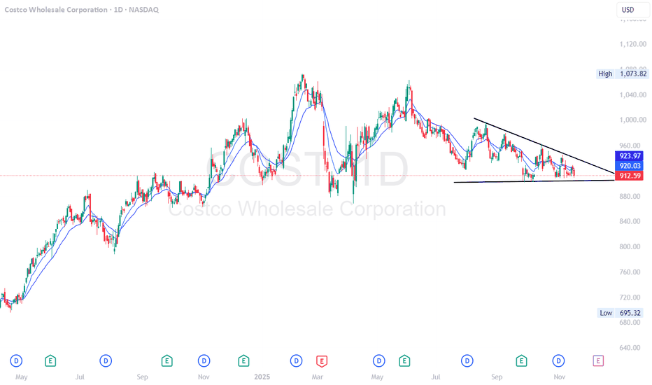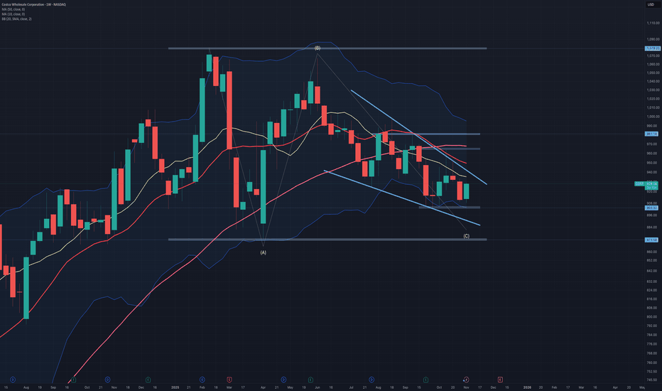 $COST: Shaping a corrective Flat NASDAQ:COST : An interesting pattern might be forming since its February all-time high (ATH). It could be developing into a flat structure with an ABC pattern, and the wave (C) seems to be taking the shape of a wedge. So far, the weekly candlestick is printing an inside week.
