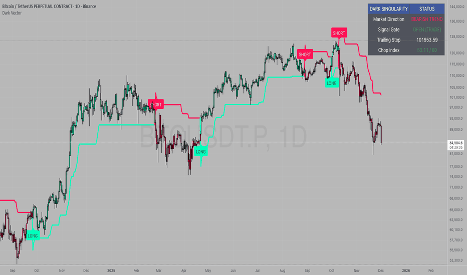 Enter a trade only when the 'L' or 'S' label appears on the chart AND the Action panel on the dashboard displays LONG SIGNAL or SHORT SIGNAL.