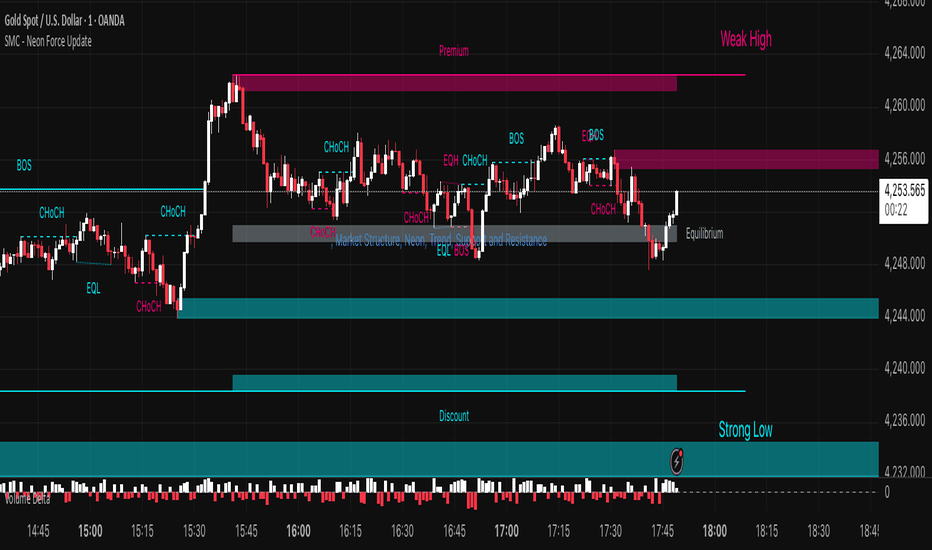 Smart Money Concepts [Modern Neon V2]This is a visually overhauled version of the popular Smart Money Concepts (SMC) indicator, designed specifically for traders who prefer Dark Mode, High Contrast, and Maximum Visibility.