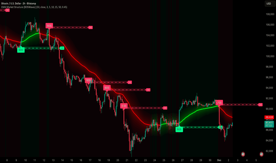 Trend Reversals : Flat or decelerating EMA with BOS failures may indicate impending structural change.