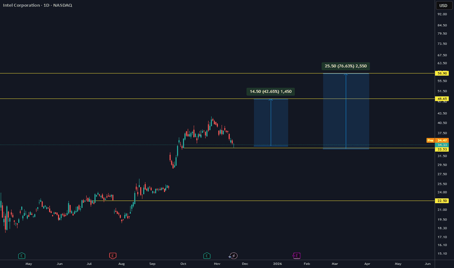 Intel trying something very soon!“We are seeing negative divergence on the RSI indicator. Additionally, Intel’s future projections would not look very promising if it weren’t for Trump’s rhetoric about bringing chip production back to the U.S. With this narrative, Intel appears poised for upward momentum. In a scenario where tensio
