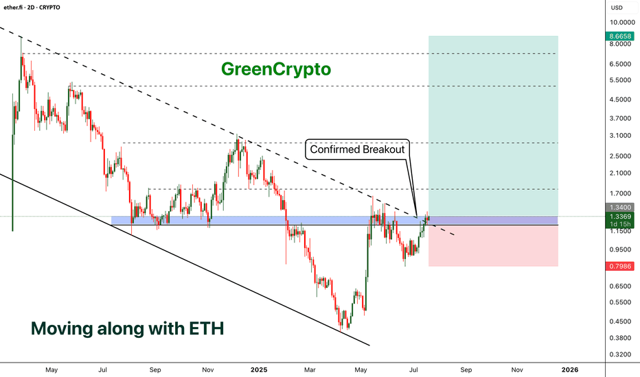 ETHFI - Moving along with the ETH- ETHFI has finally broken out from the descending channel pattern and now price is above the trending resistance line.