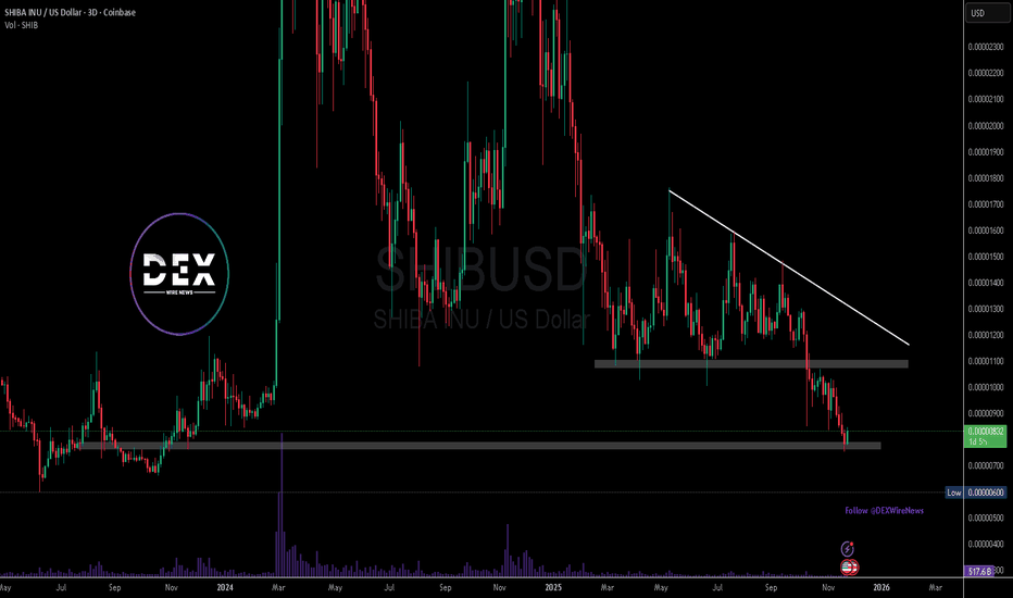 SHIB ($SHIB) Approaches a Critical Market Turning Point Shiba Inu ( CRYPTOCAP:SHIB ) trades near $0.0000082, hovering at the lower boundary of its long-term descending channel. This area has triggered strong rebounds in previous cycles, and traders now watch closely to see if the pattern repeats. Weeks of selling pressure pushed SHIB into a critical zone