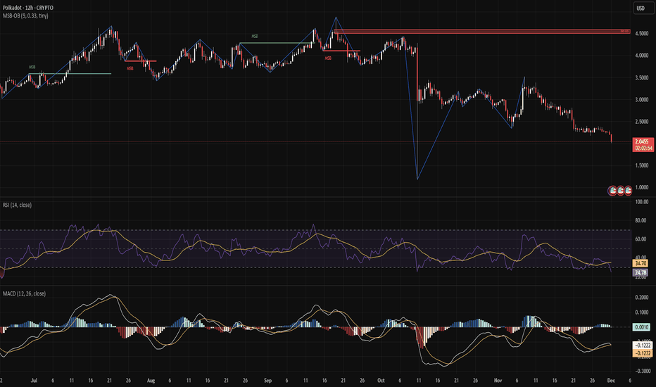 Polkadot Crashes to 2.00 – Breakdown Fully ConfirmedDOT just dropped -7.5% and is now sitting at 2.04, confirming a full structural breakdown. No bullish MSB in sight, and price continues setting lower lows.