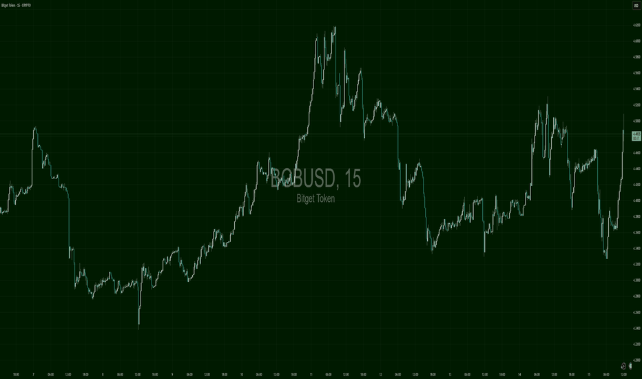 BOBUSD – From Collapse to ComebackBOB had a parabolic rip to $4.62, followed by a hard selloff into $4.26. The structure then consolidated tightly and launched again early July 15 into $4.50+. That rally is now pushing again on volume — a reversal double-bottom confirmed over $4.42. Bulls must hold above $4.40 to stay in control.