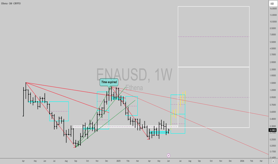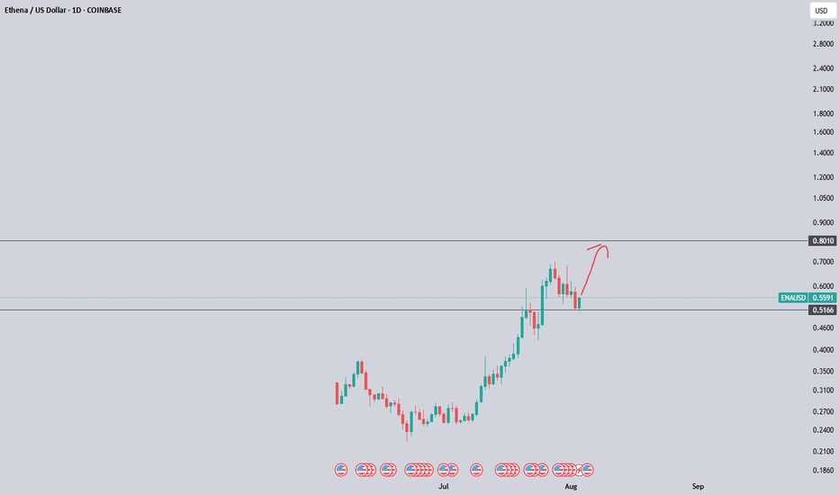 Ethena Bullish Confluence Zone in Sight📊 CRYPTO:ENAUSD Ended the cycle form June low and current pullback is looking for the next buying opportunity around equal legs rea $0.53 - $0.47 before resuming the rally again.