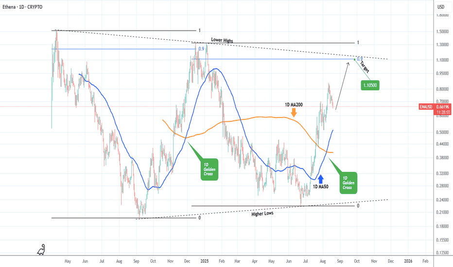 ENAUSD 1D Golden Cross targets 1.10500.Ethena (ENAUSD) has been trading within a Triangle pattern ever since it's very start and since the June 22 Low it's been unfolding the new Bullish Leg