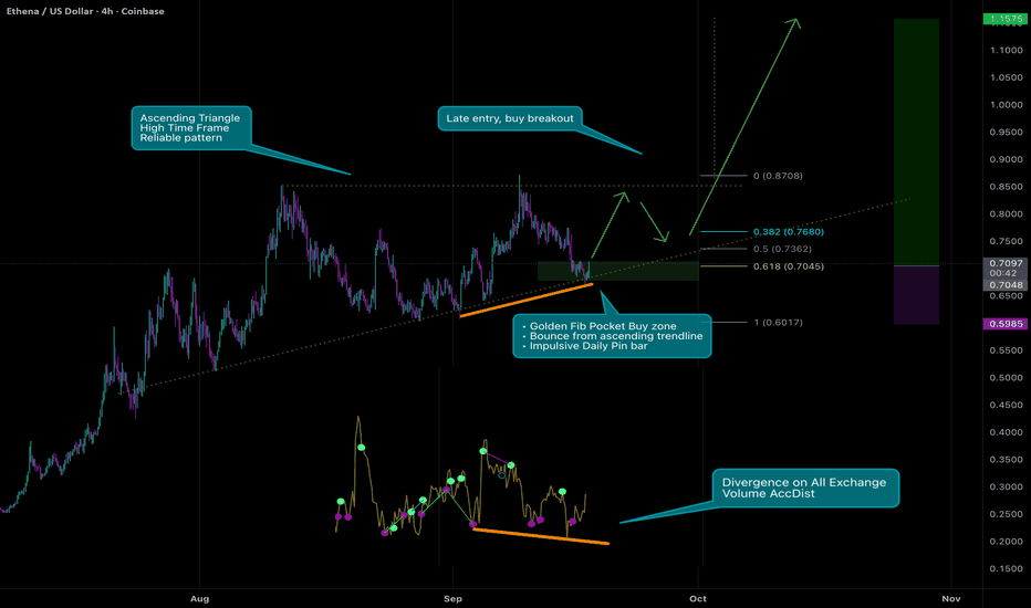 LONG ENA - Defi Bullish Ethena (ENA) is quietly sitting in a strong technical and narrative accumulation zone. If the GENIUS Act passes and DeFi momentum returns, ENA could realistically revisit the $1.00–$1.50 zone (3.5x–5.5x). Given its core use case (synthetic yield stablecoin), this is one of the cleaner asymmetric bet