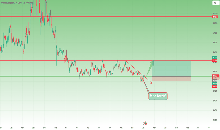 Recently, the price broke below the range support, reaching as low as $4.0, but this move lacked follow-through. Instead, ICP quickly rebounded — a classic false break signal.