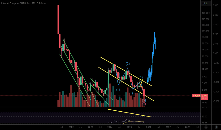 $ICP and Altcoins bottom against $BTCICP looks to be completing a 5 wave corrective Elliot wave count. We may be bottoming here putting in a higher low which will establish a trend change to the upside from a long term downtrend. It will be its first higher low.