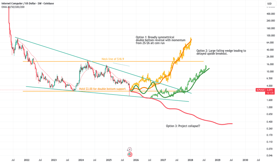 ICP: Double bottom/falling wedge reversal or project collapse?Which of these options do you think has the highest probability?