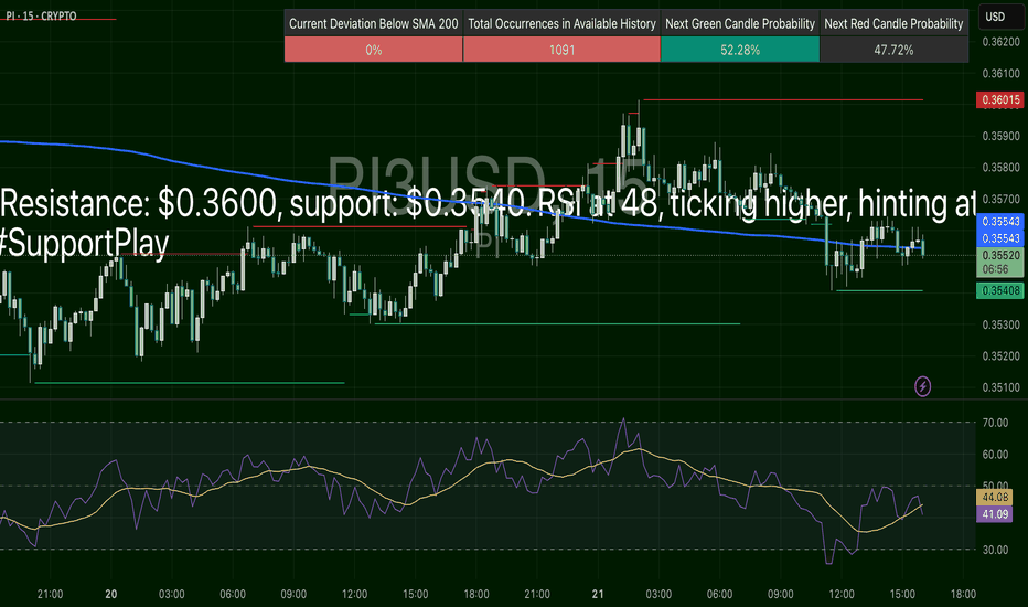PI3/USD – Holding SMA200 Support🟢 LONG above $0.355 – target $0.360