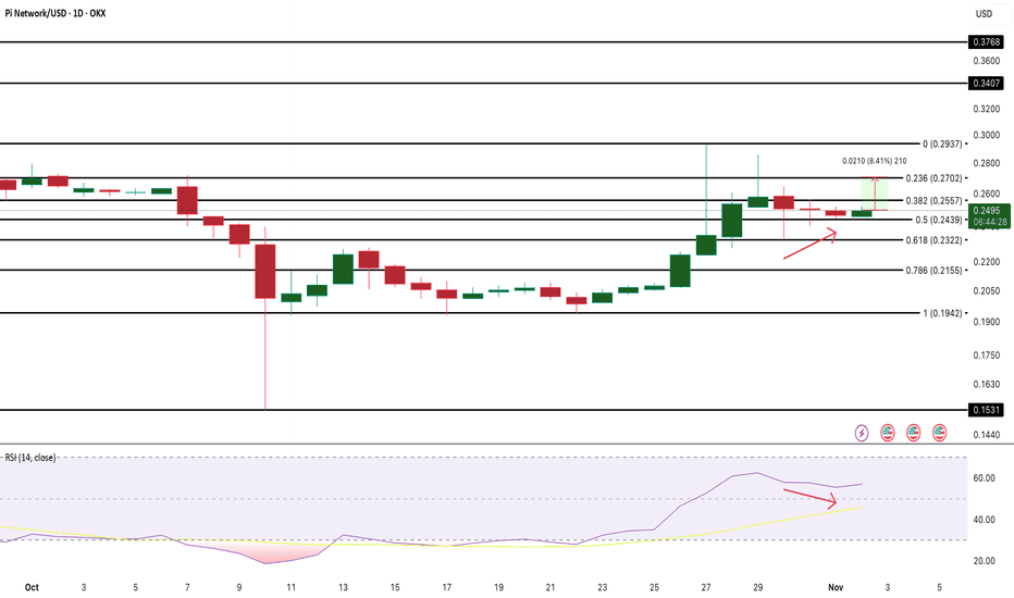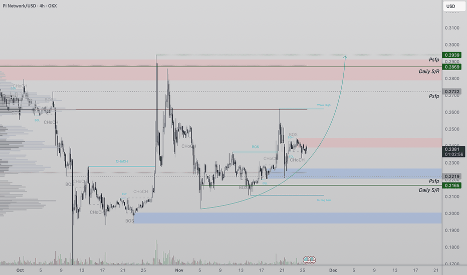 Pi Network (PI) Update, bullish reversal?Pi Network is developing a clear accumulation range above the $0.21 zone, showing stability after a period of corrective movement. Higher lows forming beneath the point of control indicate that buying pressure is gradually building.