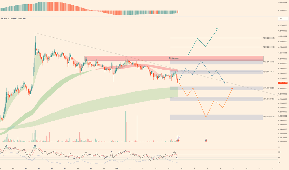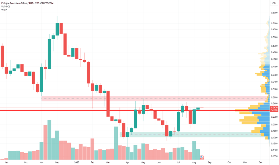 Another attempt to reverse from the downtrendPOL (MATIC) remain within downtrend on higher timeframes, but on daily shows intentions to grow higher. Red zone is old range bottom formed since token listing in 2021 and tested 4 times before break down. July 8th scam pump wick re-tested that level from below for the first time. So if manage to ge