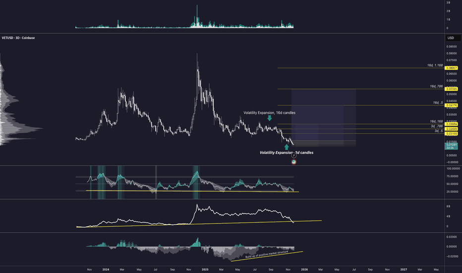 VET - BullishThis chart highlights how VET behaves when volatility expansion occurs at major swing levels.