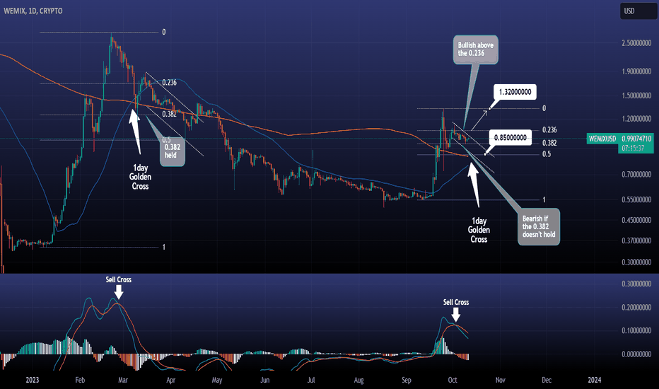 WEMIXUSD Neutral until one of those levels breaks first.WEMIX is close to a 1day Golden Cross and naturally this draws some comparisons with the last 1day Golden Cross on March 7th.
