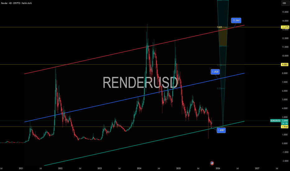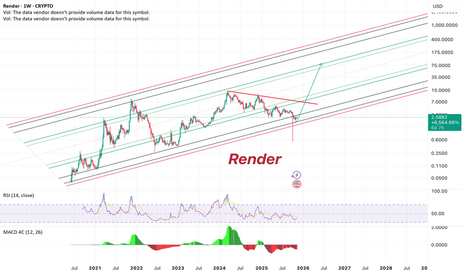 Render , black FridayGetting a chance to buy Render in -80% is truly a gift . With all the hype around AI and all the good news coming from Render it’ll blow when time comes , right now climbing in a long term channel hitting the floor and indications of massive move ahead , I’m in and waiting.