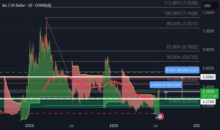 SEI-Update:Up 31% so far as we wait for the big retest back @ $1Entry was at $0.27, made a dip below this support line then recovered.