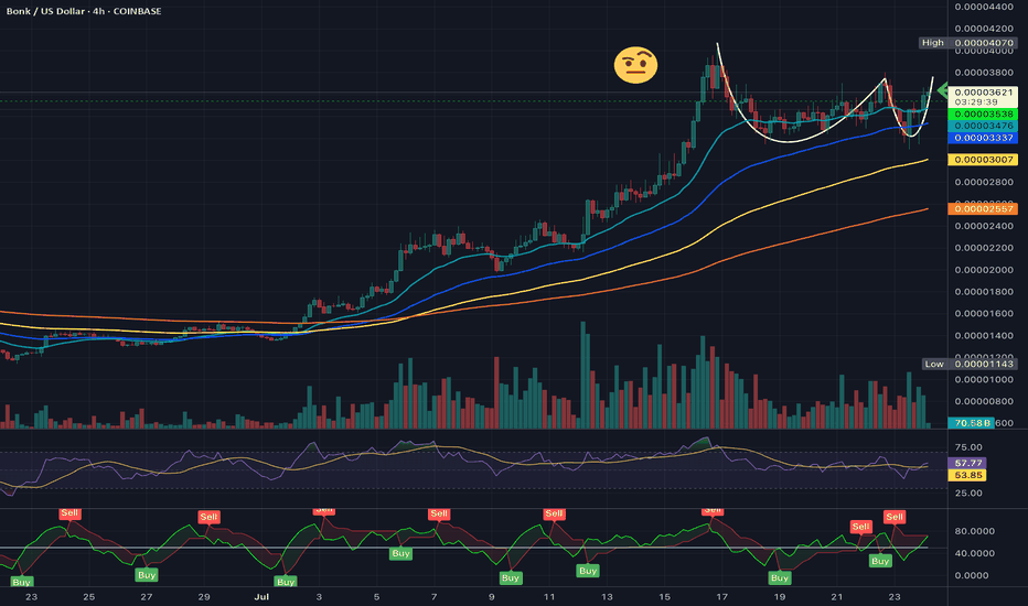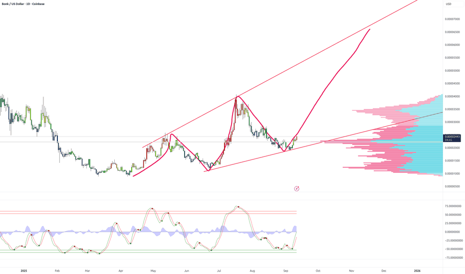 BONK? Seriously, is this about to explode?!I am not typically a meme coin investor, but I have taken a long position on Bonk. The reason for this is that the market is overheating, and I believe that Bitcoin (BTC) and Ethereum (ETH) are nearing the end of their bull runs. This implies that capital is rotating into higher-risk coins like Sola