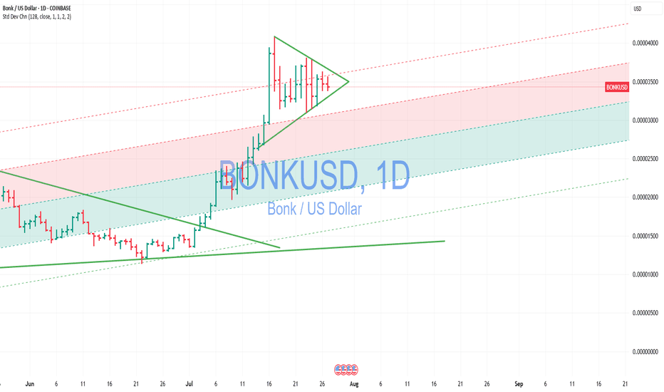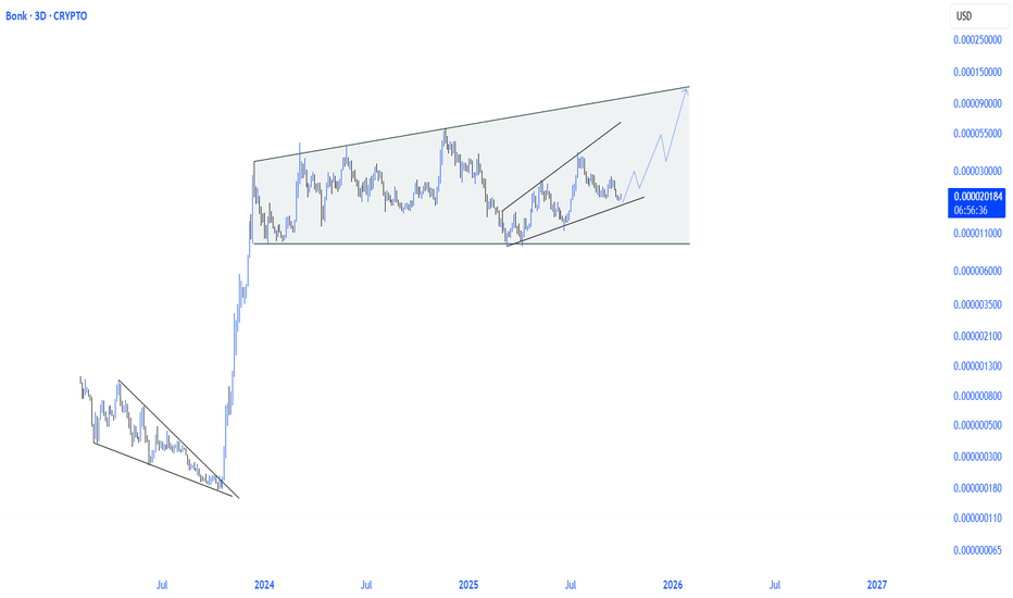 BONK MORE JUICE LEFT IN THE TANK!Hello traders as we can see BONK has had an excellent run and if you managed to get in at the bottom and ride the breakout from the first bullish pennant then you are certainly in a lot of profit!. The question is where does BONK go now. Yes we have been a way from the mean from a while. Yes we have