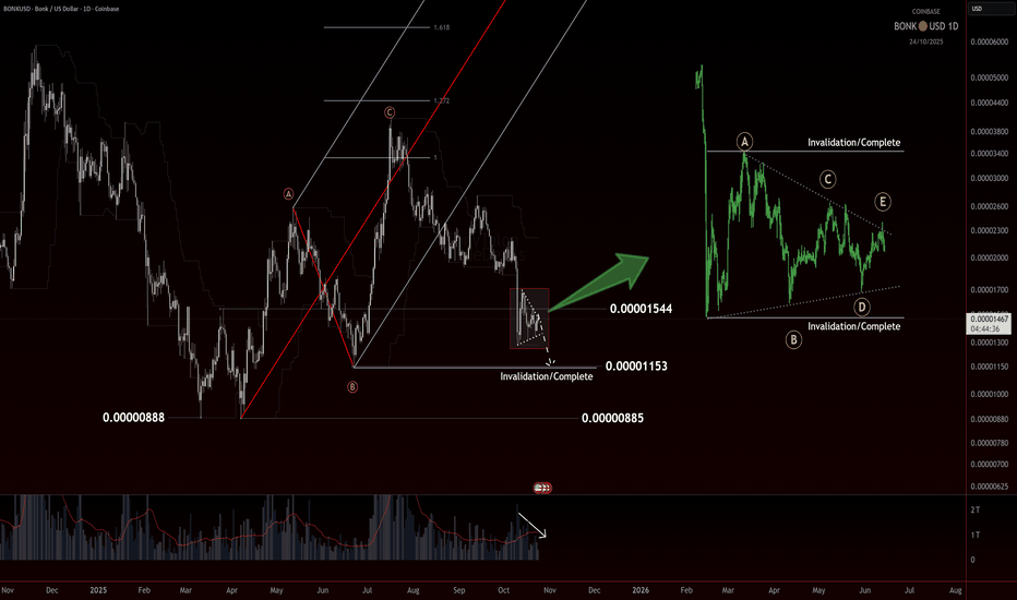 BONK was one of the first tokens to blast off this summer, setting the pace for early alt momentum. It completed what looks like a clean five-wave impulse up, but now we’re seeing the market digest that move.