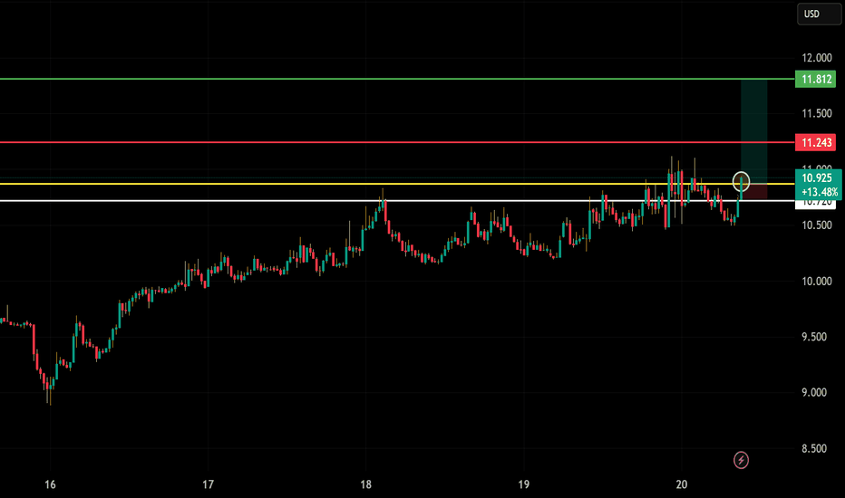 Price Action: Strong move up from $10.50 → now testing $11.00 resistance.