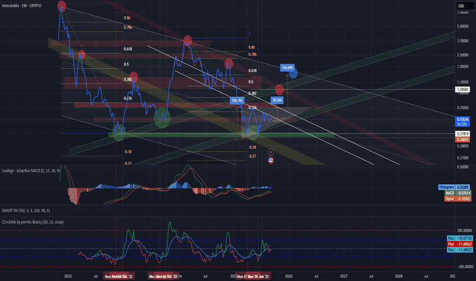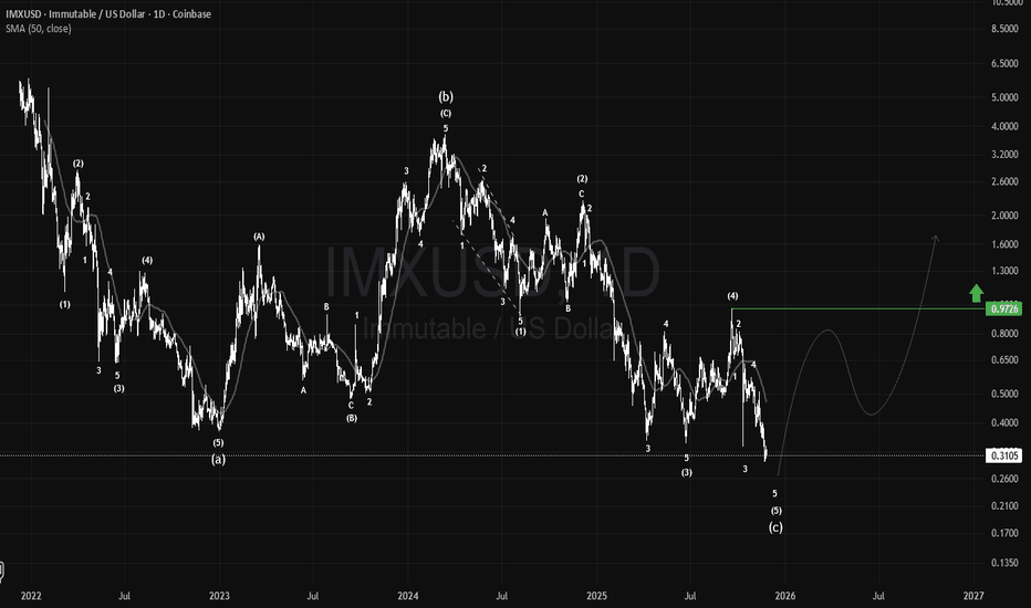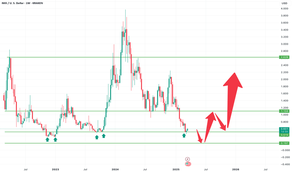IMX: Long-term Bullish Opportunity#IMX is a leading alt-coin in the gaming sector. After nearly two years of decline and a recent ATL, it shows potential for a comeback after forming a historical zigzag pattern.