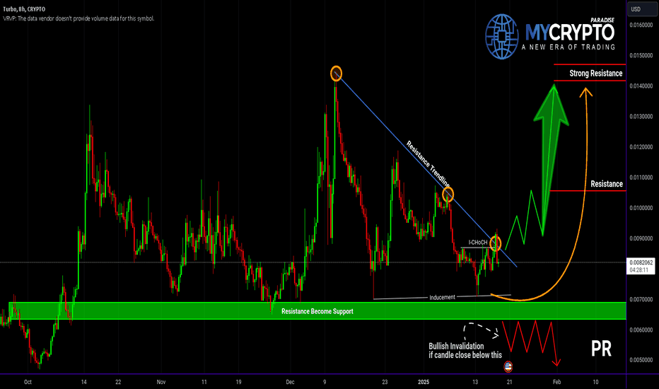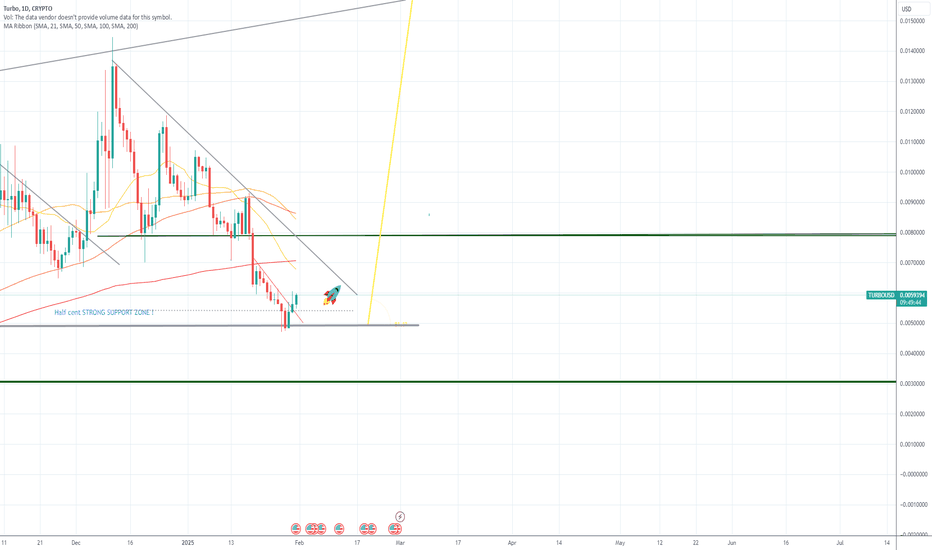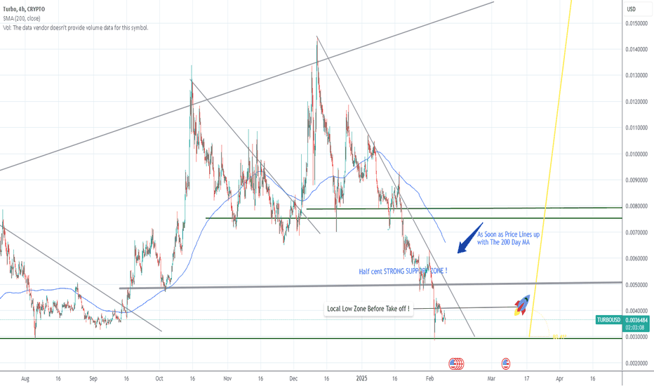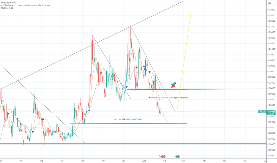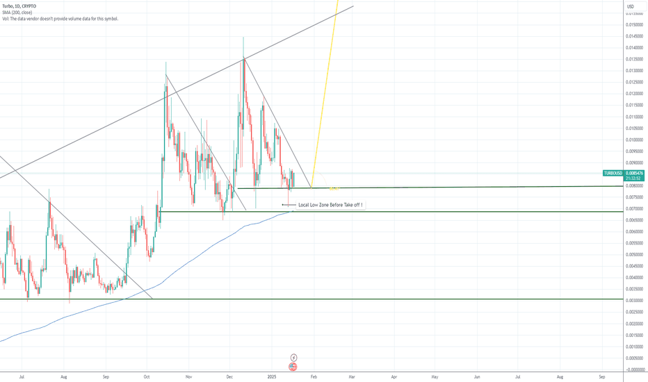 TURBO IS STILL ON TRACK FOR TAKE OFF !!! (PACK YOUR BAGS) If you have been following my trade trends on Turbo, from the Beginning "TRIPPLE BULL FLAG ON TURBO", well since then we have had both TRUMP coin and DEEP SEEK remove Liquidity from the entire market and pushing the trend into a descending bear flag, Scary times!