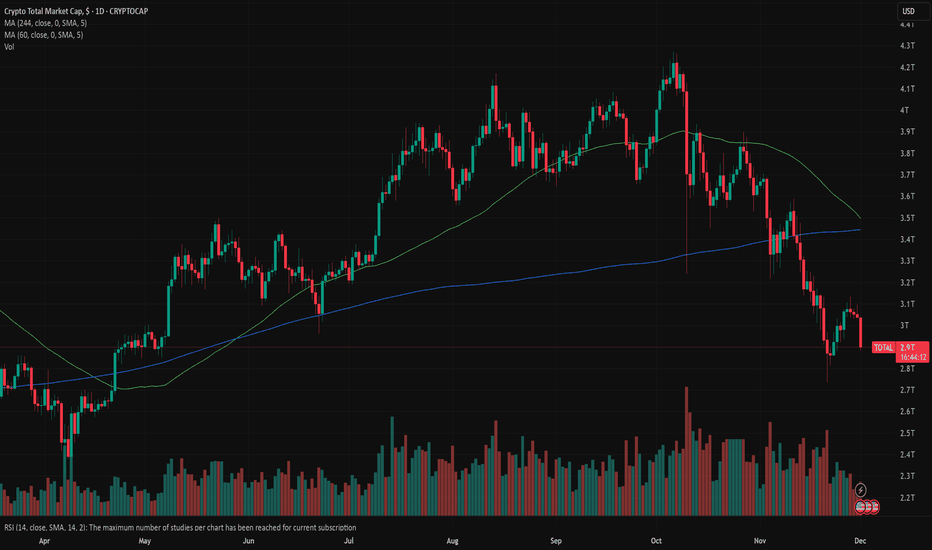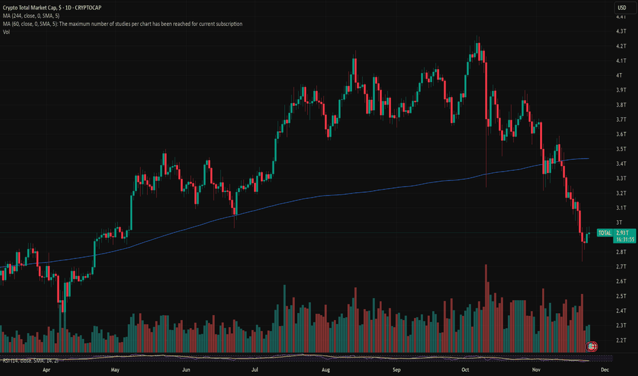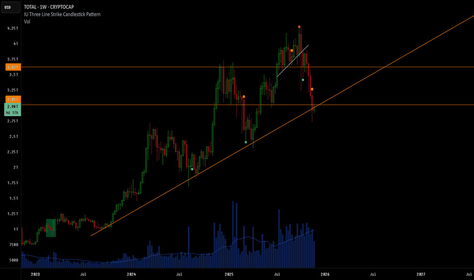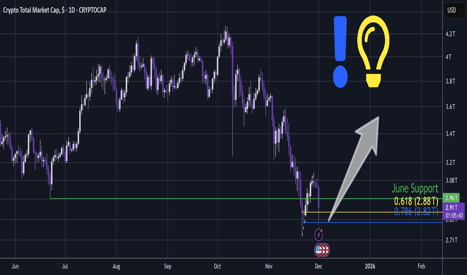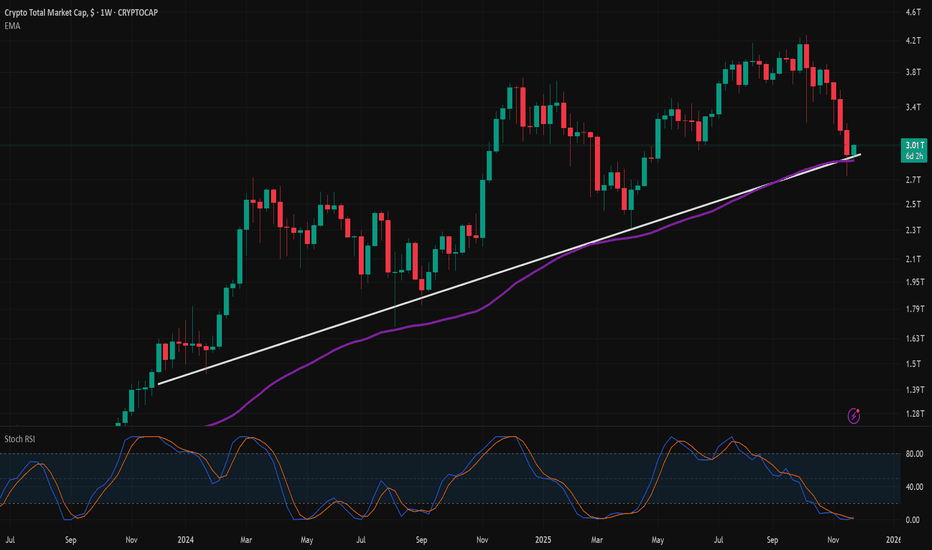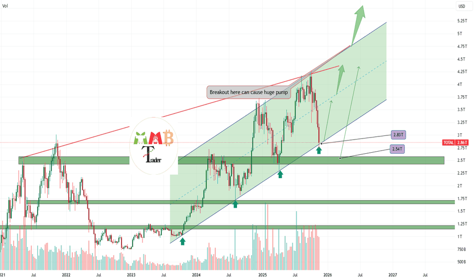 CRYPTO market see that bottom go for long The total cryptocurrency market capitalization is now testing a critical technical confluence, positioned at both a multi-week channel support and a significant historical demand zone. Following the recent market correction, this level represents a pivotal area where buyer interest has traditionally