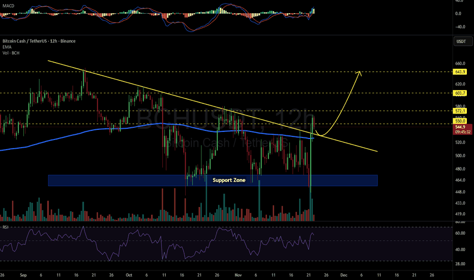 BCHUSDT 12H#BCH has broken above the descending resistance on the 12H timeframe and is now moving back to retest the broken level. The 12H EMA200 is also acting as support, adding strength to this area. In case of a successful bounce, the potential targets are: