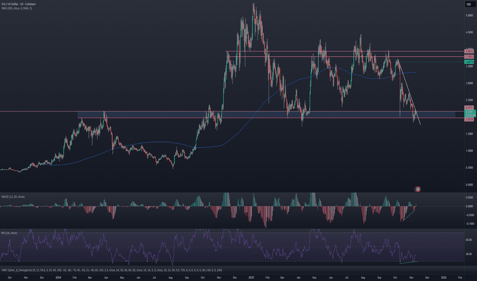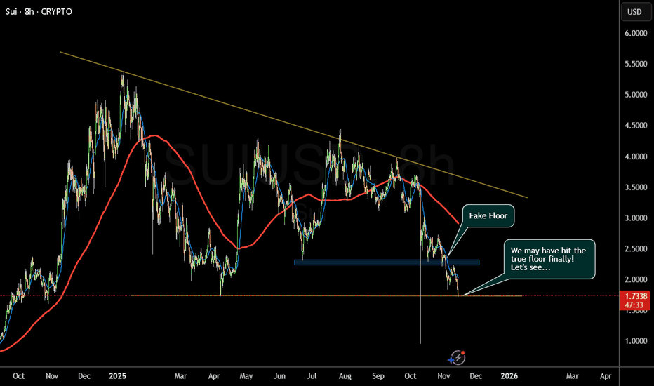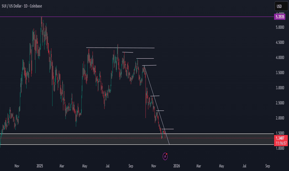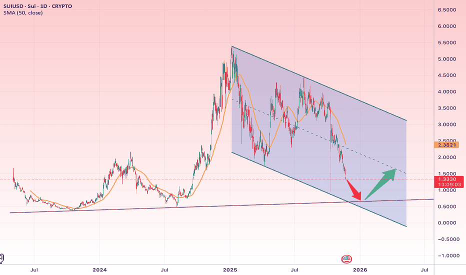 SUI Technical Analysis — Is a Major Reversal Coming?SUI is currently moving inside a large descending channel, consistently respecting both the upper and lower trendlines. Price is now approaching a critical decision zone where two scenarios become likely.