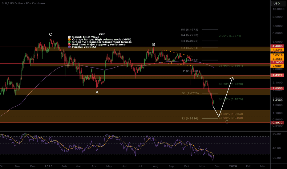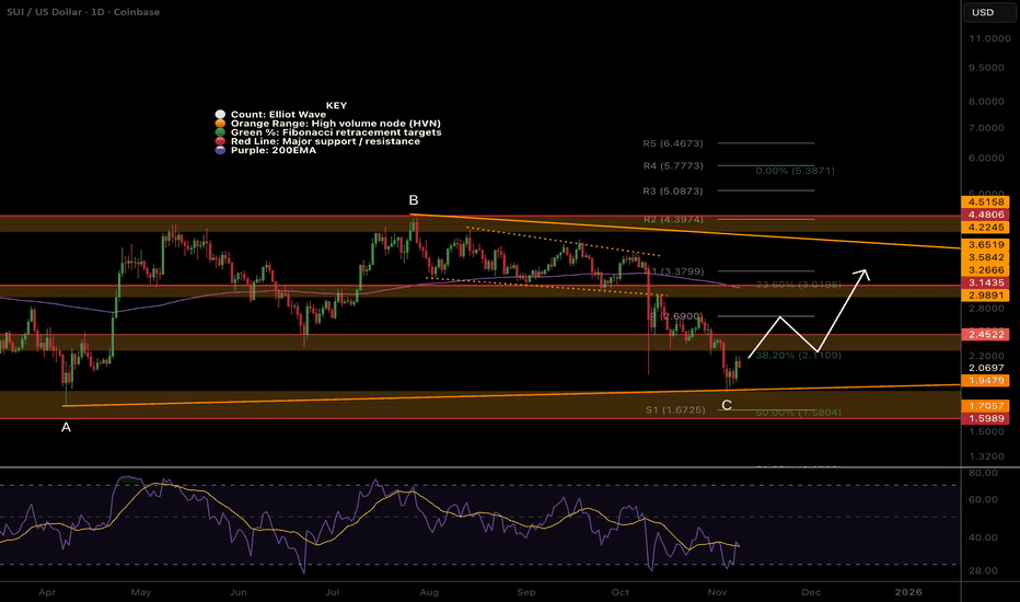 SUI Macro outlook changed...Price appears to be near the completion of a wave C correction.