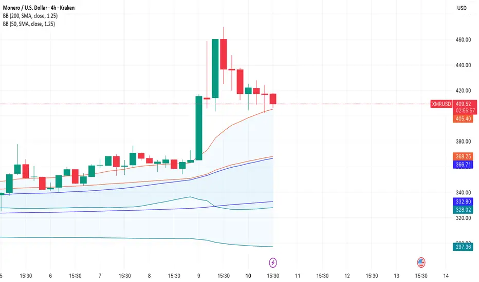 XMRUSDT is on a generational bullrun. we have pulled back to the 4h 1.25 std dev containment zone. ape in here and enjoy the bullrun while it lasts. no target obviously because its a bullrun and it will continue for as long as it continues (as long as mass psychology allows).