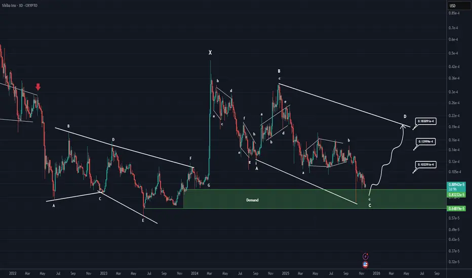 Shiba Inu is completing a very large correction across higher degrees and larger time frames.