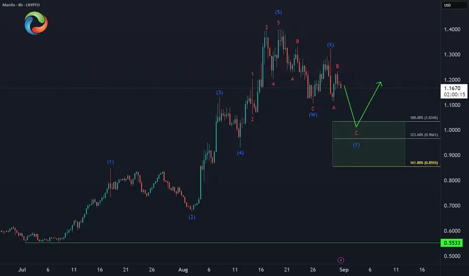 MNTUSD is unfolding a double three correction, and if price reaches the equal legs zone at $1.03–$0.85, it could offer a high-probability entry for the next bullish leg.