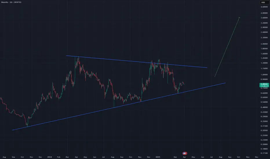 Potential for big upward movement on a long timeframe, following breakout of this triangle