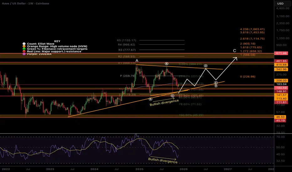 📈 Weekly RSI has room to fall and has printed bullish divergence.
