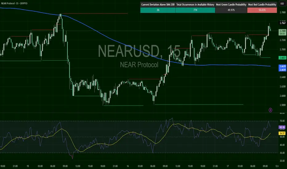 NEAR trades at $2.75, breaking above SMA200 ($2.66). Resistance sits at $2.76–2.80, support at $2.68. RSI at 65, nearing overbought but still constructive. Bulls showing strength, continuation likely if $2.75 holds.
