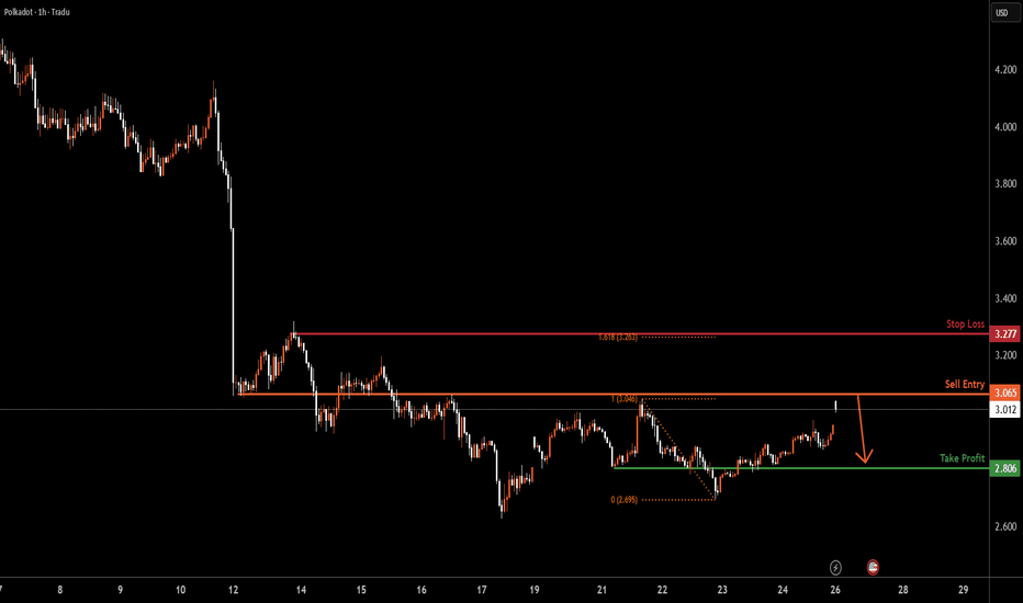 DOTUSD | Bearish Rejection at Overlap ResistanceDOT/USD is rising towards the sell entry, which is an overlap resistance and could reverse from this level to the downside.