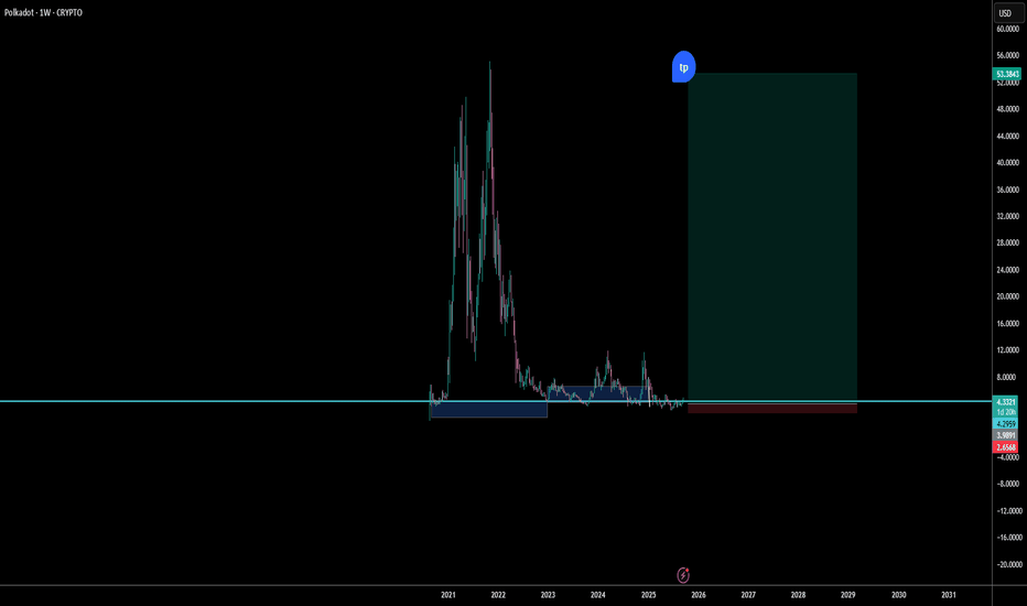 $DOT / Polkadot - Life SupportWith price coming out of the accumulation range in a downtrend and collapsed under weekly mitigated support/demand.