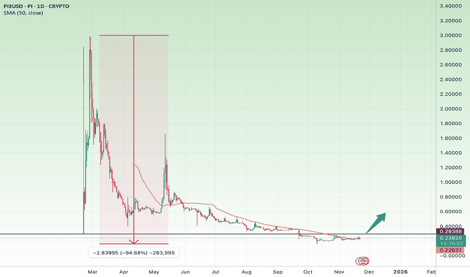 PI Coin Massive Capitulation, But a Potential Bottom Is FormingPI has experienced an extreme -95% collapse from its peak, followed by months of steady sideways consolidation. This kind of price behavior is typical after capitulation events, where sellers are completely exhausted and the market enters a long accumulation phase.